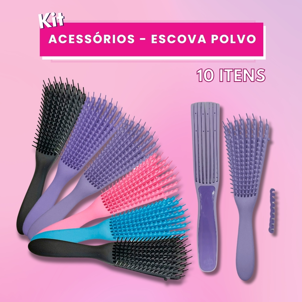 KIT 10 ESCOVAS POLVO PARA CABELOS CACHEADOS SORTIDAS