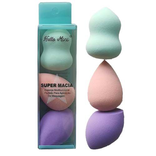 O kit de esponjas Hello Mini é macio e versátil, ideal para aplicar corretivo e base em toda a face ou na área dos olhos, garantindo um acabamento natural e aveludado. Inclui três formatos: coxinha, gotinha e chanfrada.