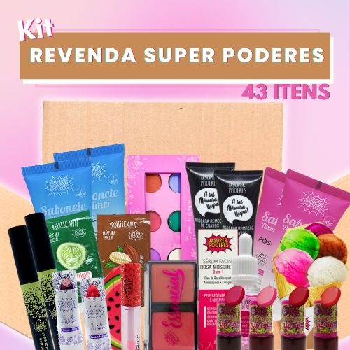 Esse kit foi pensado especialmente para você começar seu próprio negócio e ter uma independência financeira. São 43 itens da Super Poderes que possuem uma excelente qualidade e uma ótima margem de lucro para você vender e lucrar muito.